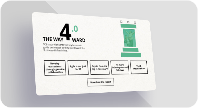 4.0 THE WAY WARD TCS study highlights five key lessons to guide businesses as they race toward the Business 4.0 finish line. Develop No more ecosystems Agile is not just Buy-in from the industry-focused Think through genuine for IT top is necessary blinders 'Machine first' collaboration Download the report