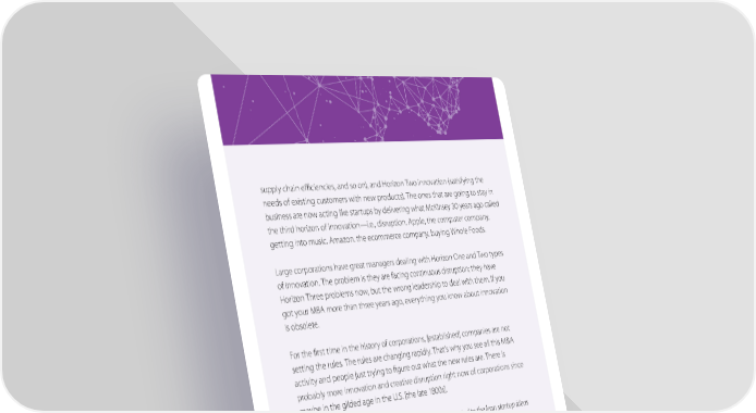 supply chain eciencies, and so on), and Horizon Two innovation (satisfying the needs of existing customers with new products). The ones that are going to stay in business are now acting like startups by delivering what McKinsey 30 years ago called the third horizon of innovation—i.e., disruption. Apple, the computer company, getting into music. Amazon, the ecommerce company, buying Whole Foods. Large corporations have great managers dealing with Horizon One and Two types of innovation. The problem is they are facing continuous disruption; they have Horizon Three problems now, but the wrong leadership to deal with them. If you got your MBA more than three years ago, everything you know about innovation is obsolete. For the first time in the history of corporations, [established] companies are not setting the rules. The rules are changing rapidly. That’s why you see all this M&A activity and people just trying to figure out what the new rules are. There is probably more innovation and creative disruption right now of corporations since maybe in the gilded age in the U.S. [the late 1800s]. TCS: So largely speaking, how have large companies reacted to the lean startup ideas since you started publishing them? Blank: Between my work and Eric Ries’ work [who in his book wrote about their application at GE and Procter & Gamble], there has been recognition and adoption at various levels. But it’s hard to turn super tankers. Remember, large corporations can innovate not only by using lean methodologies to build internal innovation; they can also buy companies.