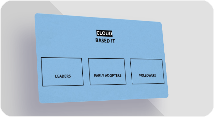 CLOUD CLOUD BASED IT 74% 65% 62% LEADERS EARLY ADOPTERS FOLLOWERS