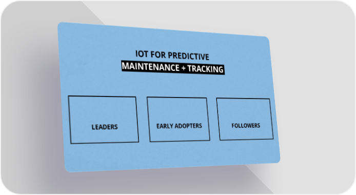 IOT FOR PREDICTIVE MAINTENANCE + TRACKING MAINTENANCE + TRACKING 63% 42% 20% LEADERS EARLY ADOPTERS FOLLOWERS