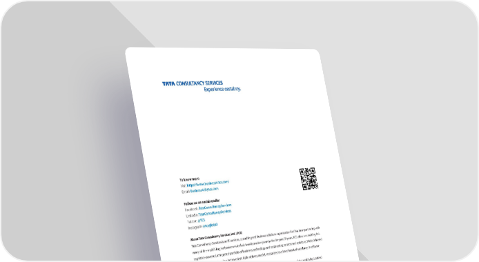 To know more Visit https://www.business4.tcs.com/ Email: [email protected] Follow us on social media: Facebook: TataConsultancyServices LinkedIn: TataConsultancyServices Twitter: @TCS Instagram: @tcsglobal About Tata Consultancy Services Ltd. (TCS) Tata Consultancy Services is an IT services, consulting and business solutions organization that has been partnering with many of the world’s largest businesses in their transformation journeys for the past 50 years. TCS offers a consulting-led, cognitive-powered, integrated portfolio of business, technology and engineering services and solutions. This is delivered through its unique Location Independent Agile delivery model, recognized as a benchmark of excellence in software development. A part of the Tata group, India's largest multinational business group, TCS has over 424,000 of the world’s best-trained consultants in 46 countries. The company generated consolidated revenues of US $20.9 billion in the fiscal year ended March 31, 2019, and is listed on the BSE (formerly Bombay Stock Exchange) and the NSE (National Stock Exchange) in India. TCS' proactive stance on climate change and award winning work with communities across the world have earned it a place on leading sustainability indices such as the Dow Jones Sustainability Index (DJSI), MSCI Global Sustainability Index and the FTSE4Good Emerging Index. For more information, visit us at www.tcs.com. All content/information present here is the exclusive property of Tata Consultancy Services Limited (TCS). The content/information contained here is correct at the time of publishing. No material from here may be copied, modified, reproduced, republished, uploaded, transmitted, posted or distributed in any form without prior written permission from TCS. Unauthorized use of the content/information appearing here may violate copyright, trademark and other applicable laws, and could result in criminal or civil penalties. Copyright © 2019 Tata Consultancy Services Limited