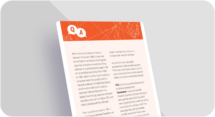 Q A When I wrote my doctoral thesis at project management, and so on— Harvard in the early 1980s, it was clear to large-scale industrial software. to me that the next future challenge for Japanese companies would be writing I found most were taking IBM software. In a post-doctoral project I did approaches to software development. at Harvard Business School from 1984 There was nothing lean about it, by the to 1986, half of my time I spent studying way. It was almost the complete opposite consumer electronic projects with a of lean or what we would today call agile. Harvard professor, Richard Rosenbloom, and the other half I spent studying TCS: So it was true waterfall approaches Japanese ‘software factories’—i.e., to software development? largely how the big Japanese computer Cusumano: It was very waterfall. manufacturers such as Fujitsu, NEC, and However, Japanese software developers Hitachi developed their software. were good at quality. But they didn’t have a good business model for making Then I published a book in 1991— money from the software itself. They called Japan’s Software Factories—on were essentially selling hardware who started the factory idea, how like IBM had done for many years, they evolved, and so on. The Japanese building operating systems and some essentially copied how U.S. computer applications. But they didn’t really know manufacturers like IBM ran their own how to make money from software. software development centers in the 1970s and 1980s, because the After this study came out in 1991, from Japanese companies were mostly being very interested in software and making IBM-mainframe compatible the new personal computers, I decided hardware and software. I got interested to ‘follow the money,’ as I like to say. in the question of whether Japanese Who was actually making money from companies could apply the expertise software? It was Microsoft. Yet nothing they had accumulated in manufacturing had really been written about how and engineering—quality control, Microsoft developed software.