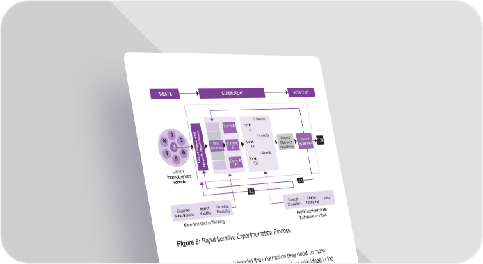IDEATE EXPERIMENT MONETIZE 1–4weeks Element Sprint ValueTests 1 nd es 1 1.X (1–5 dayseach) N 2 a 1–4weeks ue Idea ValueTests Proven/ Revised 3 l Element Sprint a ypothesElements 2 2.X (1–5 dayseach) Disproven Hypotheses 3.N V H Hypotheses 4 6 l th 5 tia 1–4weeks niow I r Element Sprint ValueTests G N N.X (1–5 dayseach) Client’s InnovativeIdea Portfolio 3.1 3.2 Customer Market Technical Concept Solution Pilots Attractiveness Viability Feasibility Simulation Prototyping ExperimentationPlanning RapidExperimentation Techniques andTools Figure 5: Rapid Iterative Experimentation Process CEO and business unit heads) the information they need to more confidently make decisions to pivot, halt, or continue with ideas in the portfolio. Large companies practicing RIEP often start with a centralized group—some call it an innovation lab or design studio or agile studio—to perform the experiments. In smaller firms such as startups, the culture demands an ‘all-hands-on-deck’ approach where likely everyone is involved.